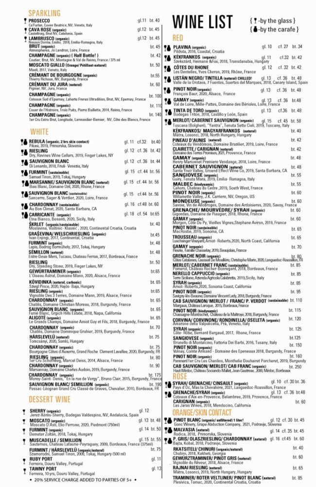 “ Really nice little wine bar! I came here early on Friday evening with a friend and was able to get the korozott from the happy hour menu which had about 6 crostinis with a cottage cheese spread and picked onion (7/10). This was definitely unusual but wasn't bad! I also ordered the Pinot blanc which was refreshing and citrusy. We also split the artichokes (6/10 they were good but only came with 4 hearts? Which is crazy for $14) And then branzino (8.5/10) great branzino with a crispy skin and really good green beans but the potatoes were a little dry and there were only 3 small pieces! Overall I'd come back for the happy hour menu and to maybe try out the tarts but otherwise I think it's a little overpriced! ”